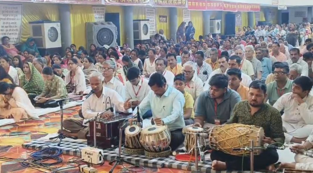 On the evening of April 11, भक्तिमय गायन (bhajan-kirtan) was held from 4:30 to 6:00 PM, which everyone thoroughly enjoyed. From 6:00 PM that evening until 6:00 AM the next morning, a continuous chanting of राम-नाम (Akhand Jap Yagya) took place, in which nearly all devotees participated with full dedication for several hours even outside their allocated jaap slots.